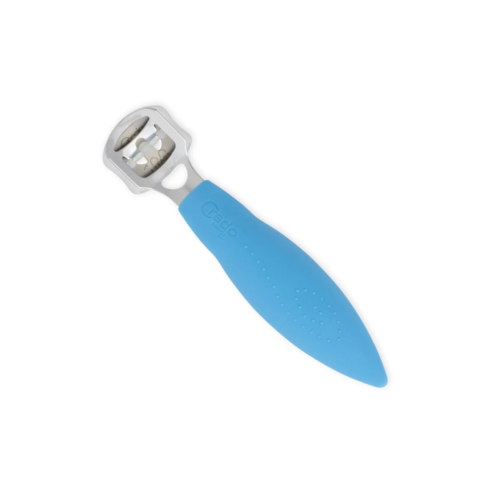 Credo's Safety Corn Cutter removes callus with a precisely defined slice of max. 0,55mm. The handle is made of plastic whose raw material is renewable sugar cane. The special blade's facette-cut gives them an extremely high cutting ability. The blades are hidden under a plastic clip and only occure when the blade is applied to the holder. This makes the use of the Credo SafetyCornCutter safe. Credo invented this tool and holds the worldwide patents for this technique.